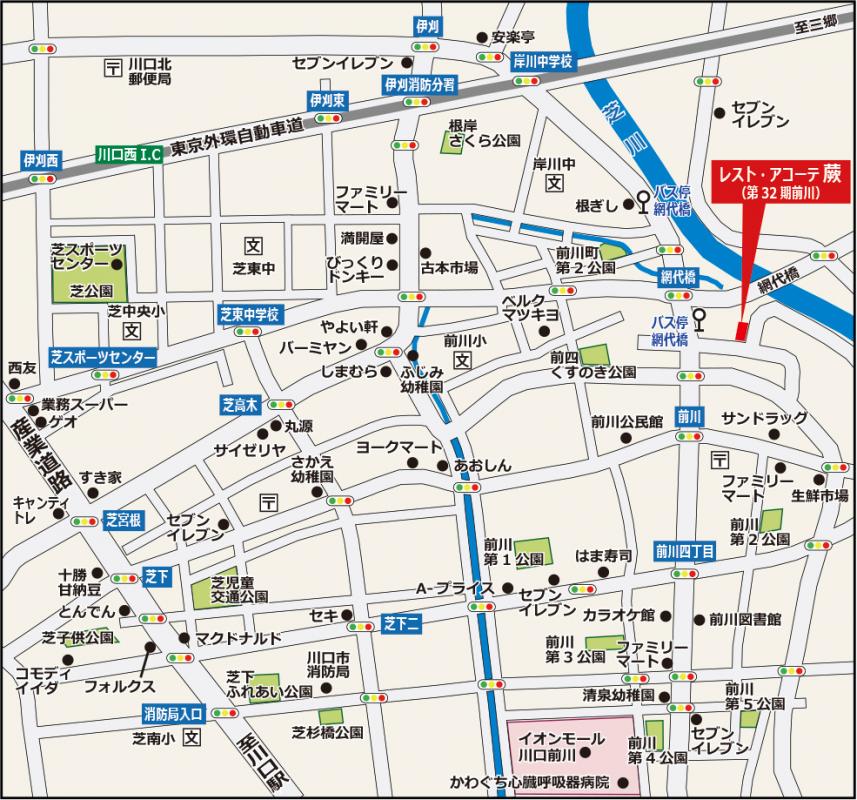バス停「網代橋」停(約270m:徒歩4分)より「川口駅東口」までバス27分