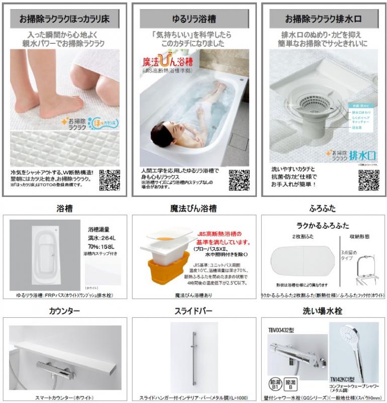 【お風呂の気持ちよさを追求】《TOTOのサザナ》掃除のしやすさ・収納の便利さなど、おふろを使う人、お手入れする人、みんなにとっての「しあわせ性能」を追求したバスルーム。